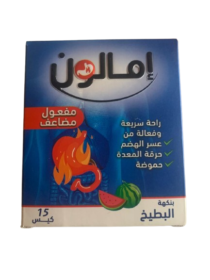 - المكونات: (كربونات كالسيوم – بيكربونات صوديم – حمض الستريك – حمض الطرطريك – نكهة البطيخ – دكستروز).